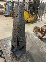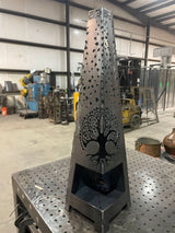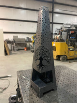 Add bold, rustic charm to your outdoor space with this handcrafted 4ft tall chimenea. Made from thick, raw American steel, this striking piece features an intricately cut Tree of Life design that glows beautifully when lit from within.