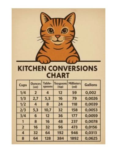 Cat Kitchen Conversions Chart – 8"x12" Sign