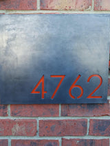 Mounting your address plaque is very simple. Attach the back plate to the the wall using the predrill counter sunk holes. Must use screw that sit flush in the hole. Next step is to peel and stick the top plate on to the back plate.