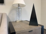 Handmade simple steel design that adds a SHARP modern design too any room. The triangle is made from mild steel and finished with oil to enhance the natural color of the metal.