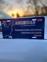Show off your American pride with our Badass Patriot '1776' License Plate!