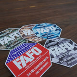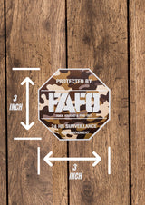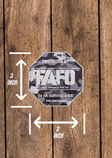 Make a statement with our eye-catching "Protected By FAFO" Sticker. This bold decal measures 3 inches in diameter—perfect for adding a touch of attitude anywhere you choose. Choose from our range of striking colors: Blue, Red, Black, American Red, White, and Blue, Camouflage, Grey Camouflage, Blue Camouflage, Green Camouflage, or Brown Camouflage.