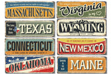 Add a touch of nostalgia to your space with this 16" x 4" vintage-style state sign, perfect for showcasing your favorite place with timeless charm. Crafted from high-quality metal, this sign features a weathered, distressed look that gives it the authentic appeal of a well-traveled road sign or an old-town relic.